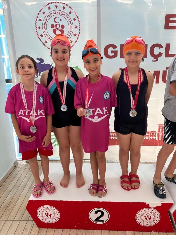 Demokrasi İlkokulu Minik/A Erkek 4x50 Serbest Bayrak Takımı İl ikinciliğini kazandı.